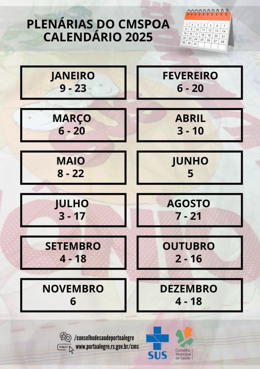 calendário dos encontros para 2025. A próxima reunião acontecerá no dia
