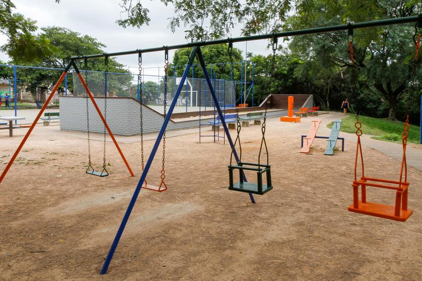 Revitalização - Nos espaços entregues pela Smsurb, foram executados serviços de pintura, instalação de novos brinquedos, demarcação de quadras esportivas, instalação de lixeiras, ajustes no passeio, recuperação dos bancos de concreto, entre outros serviços.