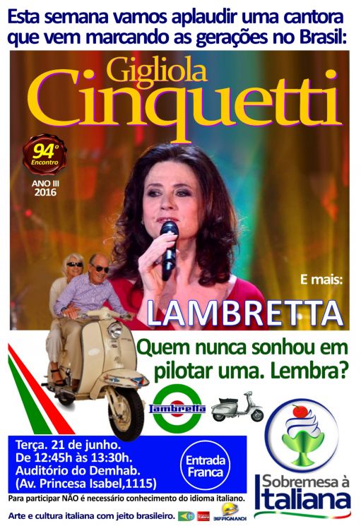 Na sequência, o Sobremesa Italiana apresenta um sucesso da cantora Gigliola Cinquetti, que marcou o cenário da canção italiana desde sua estreia nos palcos, aos 15 anos, em 1963.