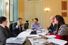O prefeito Nelson Marchezan Júnior reuniu-se na manhã desta terça-feira, dia 2, com representantes do Comitê de Gestão Orçamentária da prefeitura. No encontro, realizado regularmente, os secretários municipais de Gestão, José Alfredo Parode, e da Fazenda, Leonardo Busatto, debateram com o prefeito a grave crise que atinge as contas públicas e as medidas que estão sendo adotadas para enfrentar as dificuldades de caixa.